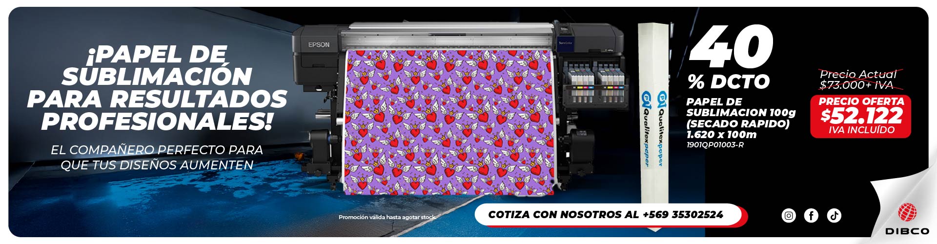 Catálogo Sublimación & Transferencia Térmica PRONTO MÁS OFERTAS PROXIMAMENTE $UPER OFERTA$ ROPA ARTICULOS SUBLIMABLES MARCOS & CUADROS DE FOTO BOTELLAS - MUG - TUMBLER - TERMOS TODO VIDRIOS TAZONES CERAMICA Y ESPECIALES BOLSAS PAPEL DE SUBLIMACIÓN, IMPRESORAS & TINTAS VINILOS DE TERMOTRANSFERENCIA PLOTTER DE CORTE & ACCESORIOS EQUIPOS DE TRANSFERENCIA TÉRMICA CHAPITAS & CORTADORES ACCESORIOS División Gráfica MATERIALES EN PLANCHA MATERIALES GRÁFICOS EN ROLLOS EXHIBIDORES POP MÁQUINAS Y TINTA MATERIALES ECOLÓGICOS HERRAMIENTAS Y ACCESORIOS DE INSTALACIÓN División Industrial SEGURIDAD VIAL CINTAS Y ADHESIVOS DISTRIBUIDORES DE FILM CONTROL SOLAR Y SEGURIDAD Productos destacados Vista PreviaSeleccionar opciones DibcoACRÍLICOSeleccionar opciones Vista PreviaAñadir a tu cotización DibcoCARTÓN BLANCO DISPAAñadir a tu cotización Vista PreviaAñadir a tu cotización LAMINADORA 1.6 MTS ANCHOAñadir a tu cotización Vista PreviaSeleccionar opciones DibcoCARTÓN ESTRUCTURAL LIGHTSeleccionar opciones NOTICIAS Sublimación, paso a paso. ¿Qué es la sublimación? Y los pasos para este proceso. El proceso de la sublimación en impresión se Leer más Máquinas de Transferencia Térmica Nuevas planchas de transferencia térmica, para sublimación y para vinilos sensibles al calor. ¿Cómo saber con cuál iniciar? Leer más NUEVOS PAPELES DE SUBLIMACIÓN (secado rápido). Todo lo que necesitas saber de nuestros nuevos papeles de sublimación de secado rápido en formatos A3, A4 Leer más